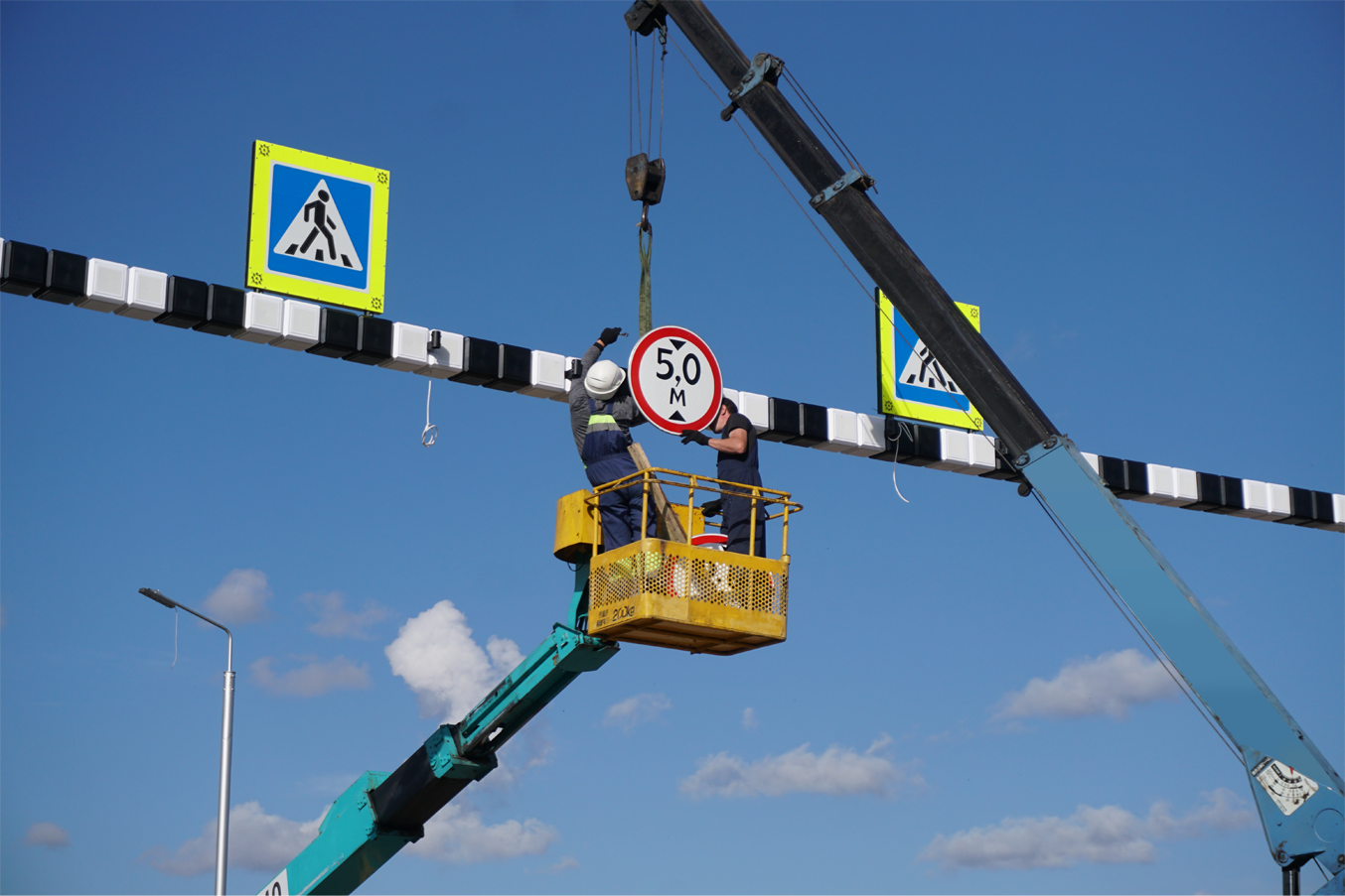 2. Монтаж металлоконструкций для дорожных объектов:- Светофорные колонны и опоры освещения.